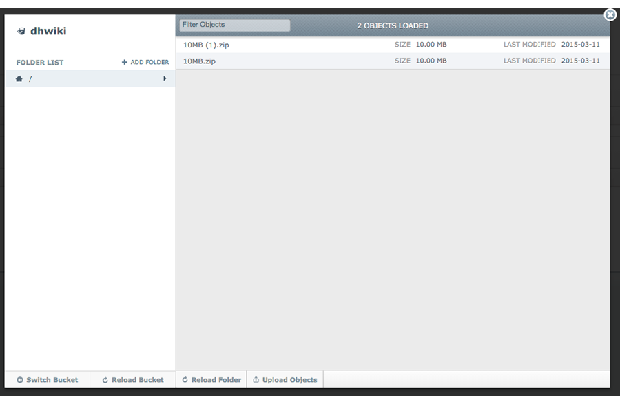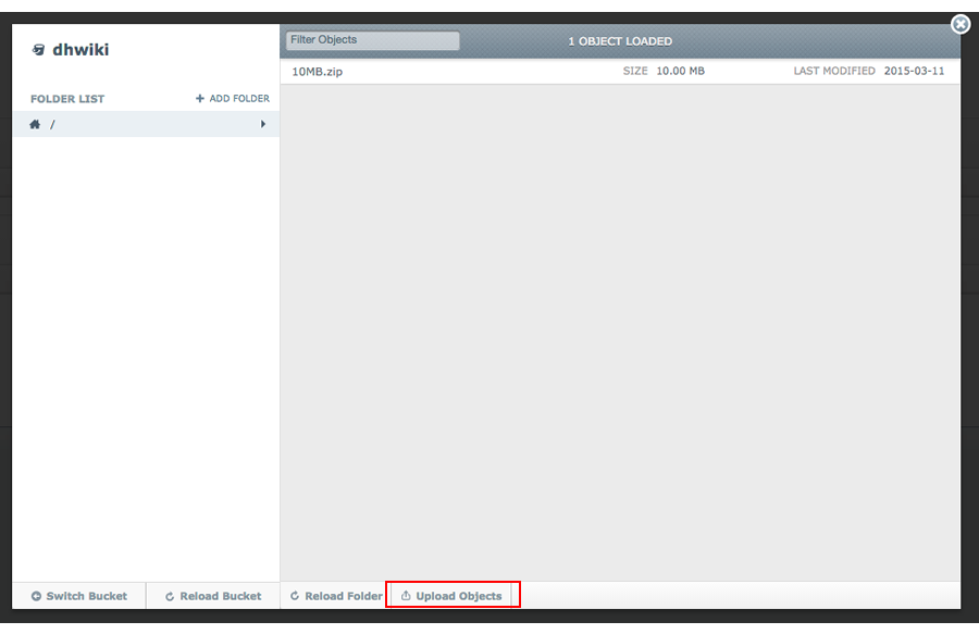 - Click the Upload Objects button at the bottom of the Object Browser.