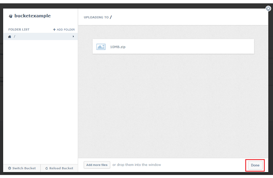 If you need to upload a folder (directory) which includes files, you must use an S3 compatible client.