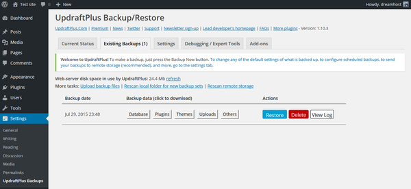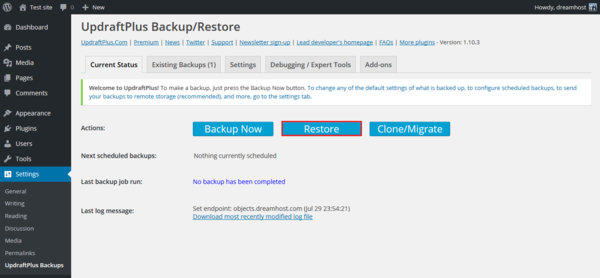 This article describes how to install and manage UpdraftPlus, a tool that allows you to easily backup your WordPress site to DreamObjects.