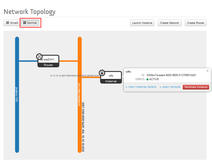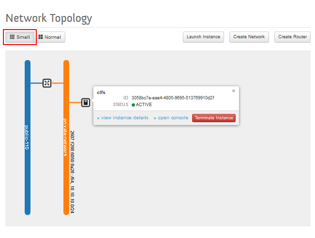 This is the default view when first visiting the page. If necessary, you can also select the small view by clicking the Small button at the top left. This is a basic view of your DreamCompute setup where: