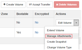- Click the dropdown menu and select Manage Attachments. The new window will show no attachments at this time. It also displays a dropdown with a list of your instances.