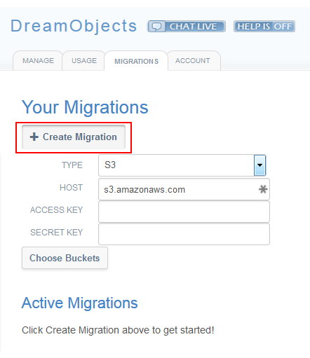 - Navega a la página DreamObjects en tu panel de DreamHost.