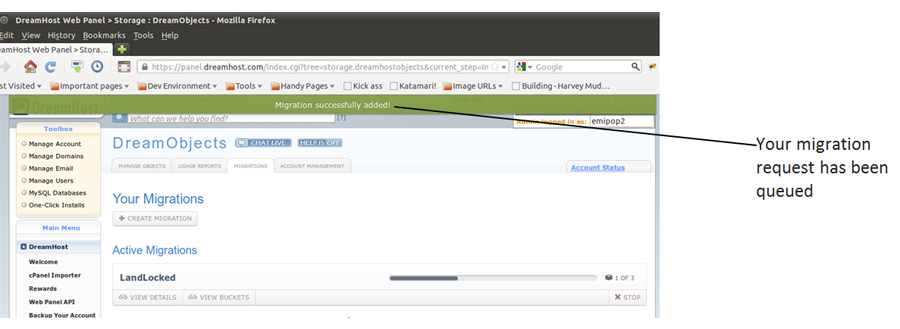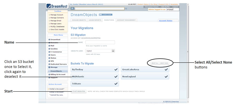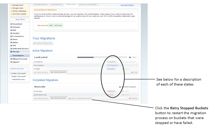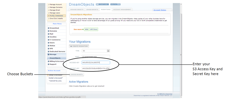 - Navega a la página DreamObjects en tu panel DreamHost.