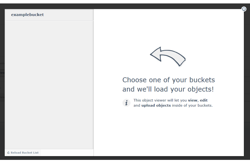 - Recargar Bucket — Para ver los cambios (objects agregados o eliminados) del bucket.