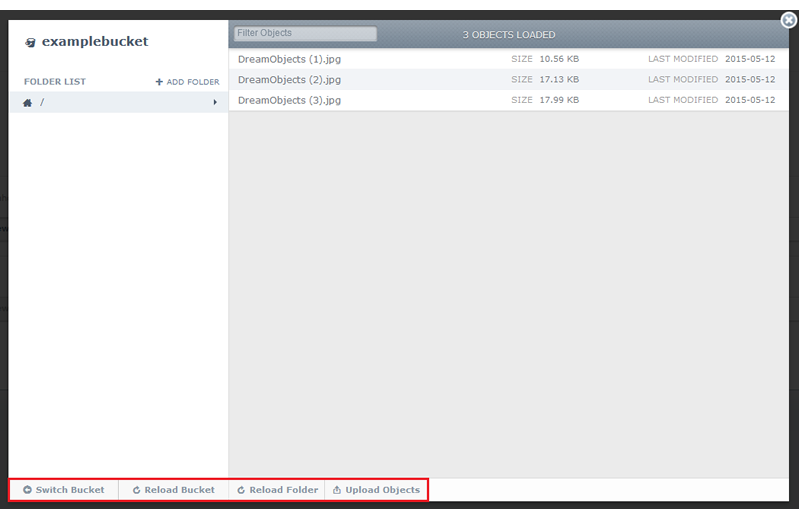 - Cambiar Bucket — Ver los diferentes contenidos de un bucket.
