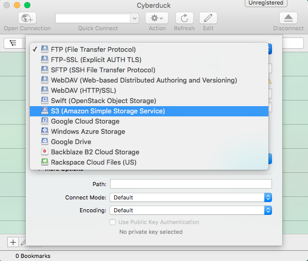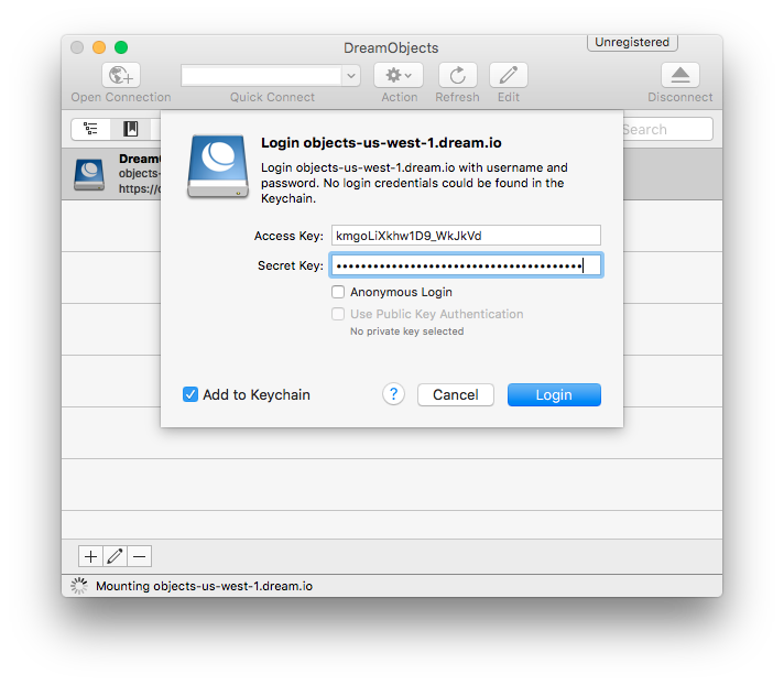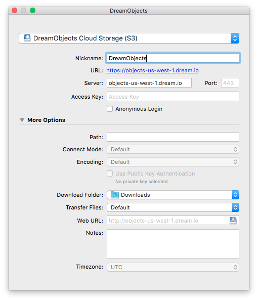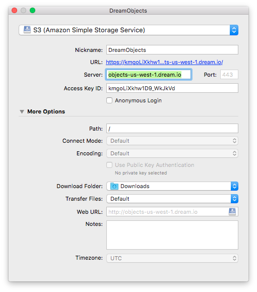 Para conectar Cyberduck a DreamObjects: