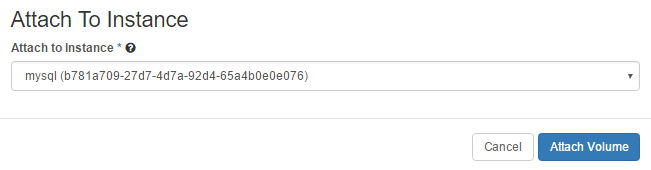 Para usar tu volumen, necesita ser adjuntado para una instancia que ya está corriendo. Si no tienes instancias, necesitarás crear una. Usando CLI requiere que el nombre de la instancia y el UUID del volumen.